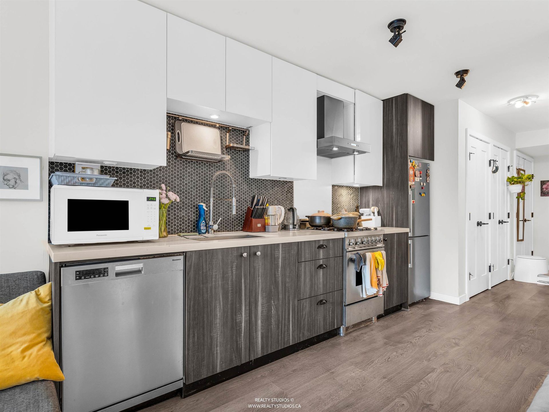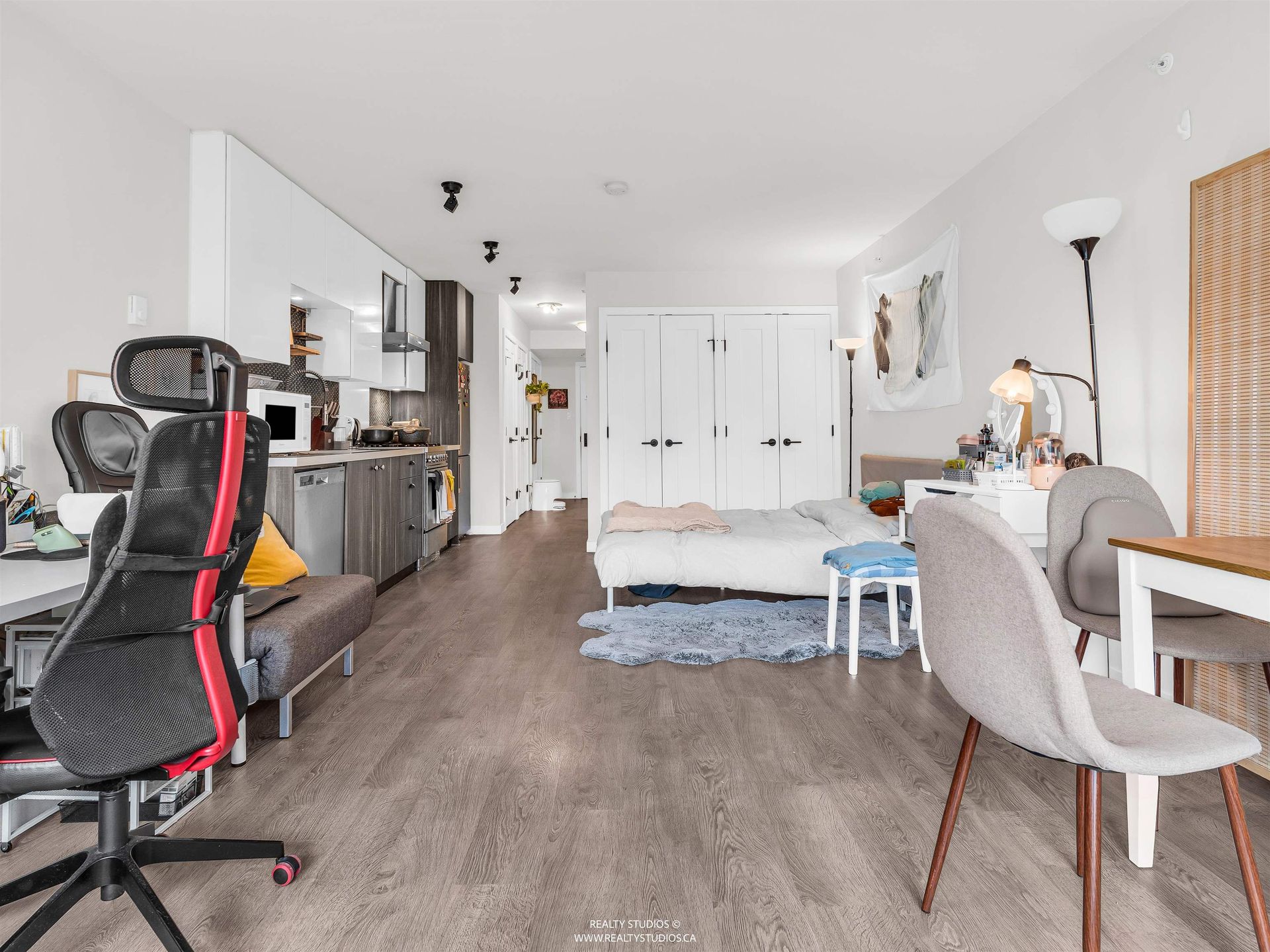 The Wohlsein - Smart, Stylish Living! Come see this well-designed studio + flex space. Bright south-facing exposure brings in great natural light to your private deck and living space. Features include engineered hardwood floors, a sleek kitchen with stainless appliances, modern cabinetry and larg