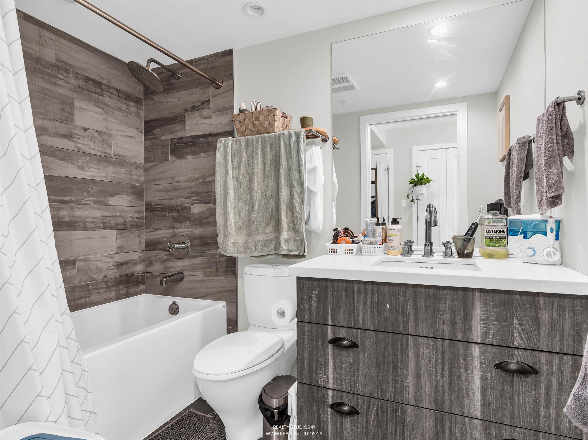 The Wohlsein - Smart, Stylish Living! Come see this well-designed studio + flex space. Bright south-facing exposure brings in great natural light to your private deck and living space. Features include engineered hardwood floors, a sleek kitchen with stainless appliances, modern cabinetry and large 5-piece bath. Thoughtful layout with two foyer closets and in-suite laundry. Comes complete with parking and locker. A fantastic opportunity for first-time buyers or investors in a well-located building.