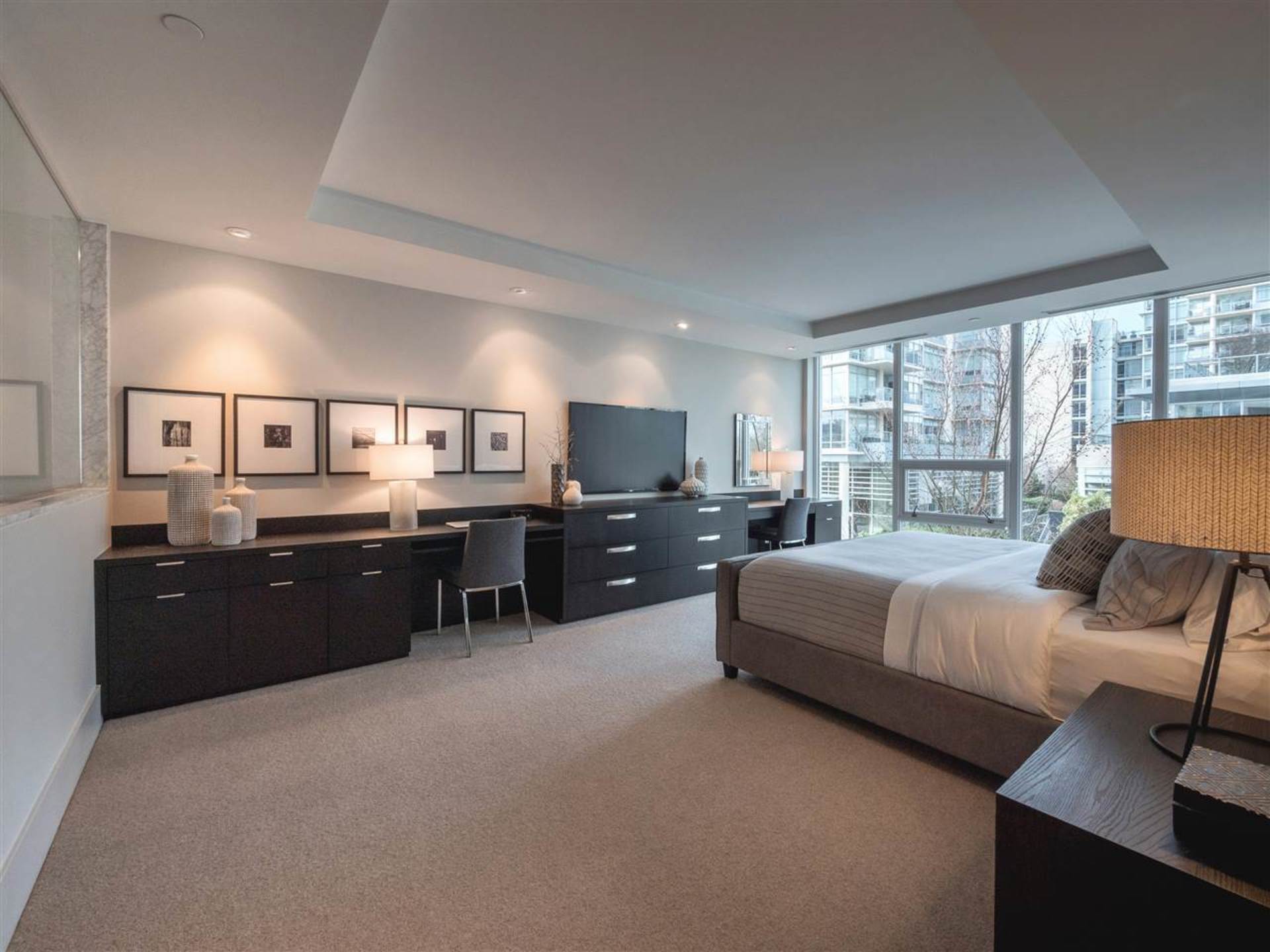 The ERICKSON - world-renowned as the most prestigious building on Yaletown's waterfront. Magnificent two level townhouse with spacious rooms and luxurious finishes. Entertain your family & friends in the expansive open space on the main floor and adjoining patio. Cooking is a dream in the ultra-modern European kitchen with gas range, stone counters & adjacent pantry. Two king-sized bedrooms upstairs. Master features walk-in closet & custom built-in workstations. Sumptuous ensuite with heated floors, luxurious tub & spacious walk-in shower. Private 2 car garage & large storage room. Exclusive concierge, fabulous lobby & first-class spa-style amenities. Steps to the seawall, parks, shops & restaurants. This is the lifestyle you deserve. By appt. only.